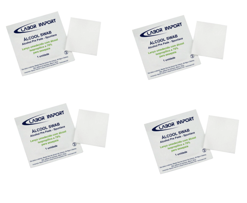 • Compressa de tecido não tecido (TNT) umedecido em álcool isopropílico a 70%, não inflamável.