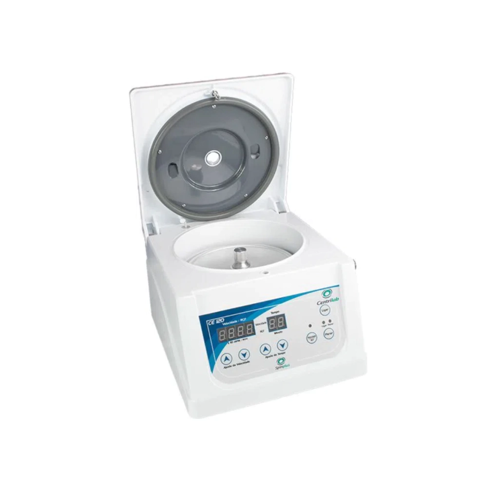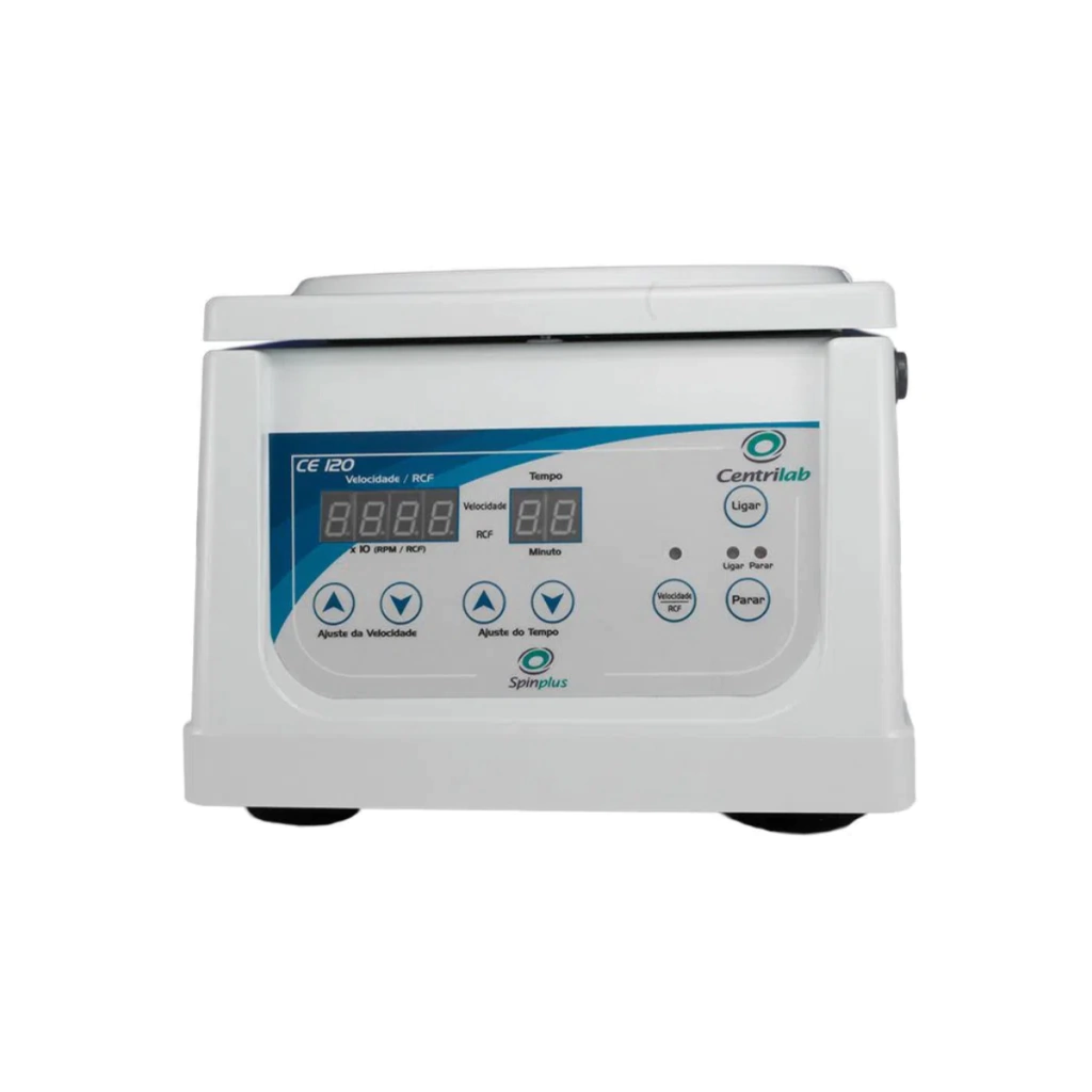 A Centrífuga Centrilab Digital Mod. CE 120 é para exame de hematócrito, com leitura manual através de régua graduada. Constituída por estrutura fabricada em plástico de alta resistência, tampa com reforço interno metálico e trava manual, rotor com encaixe rosqueável e pés de borracha aderentes (tipo ventosas), possui painel frontal com LED luminoso indicativo de funcionamento / repouso, controladores e display digital de velocidade e tempo. A mais silenciosa da categoria!