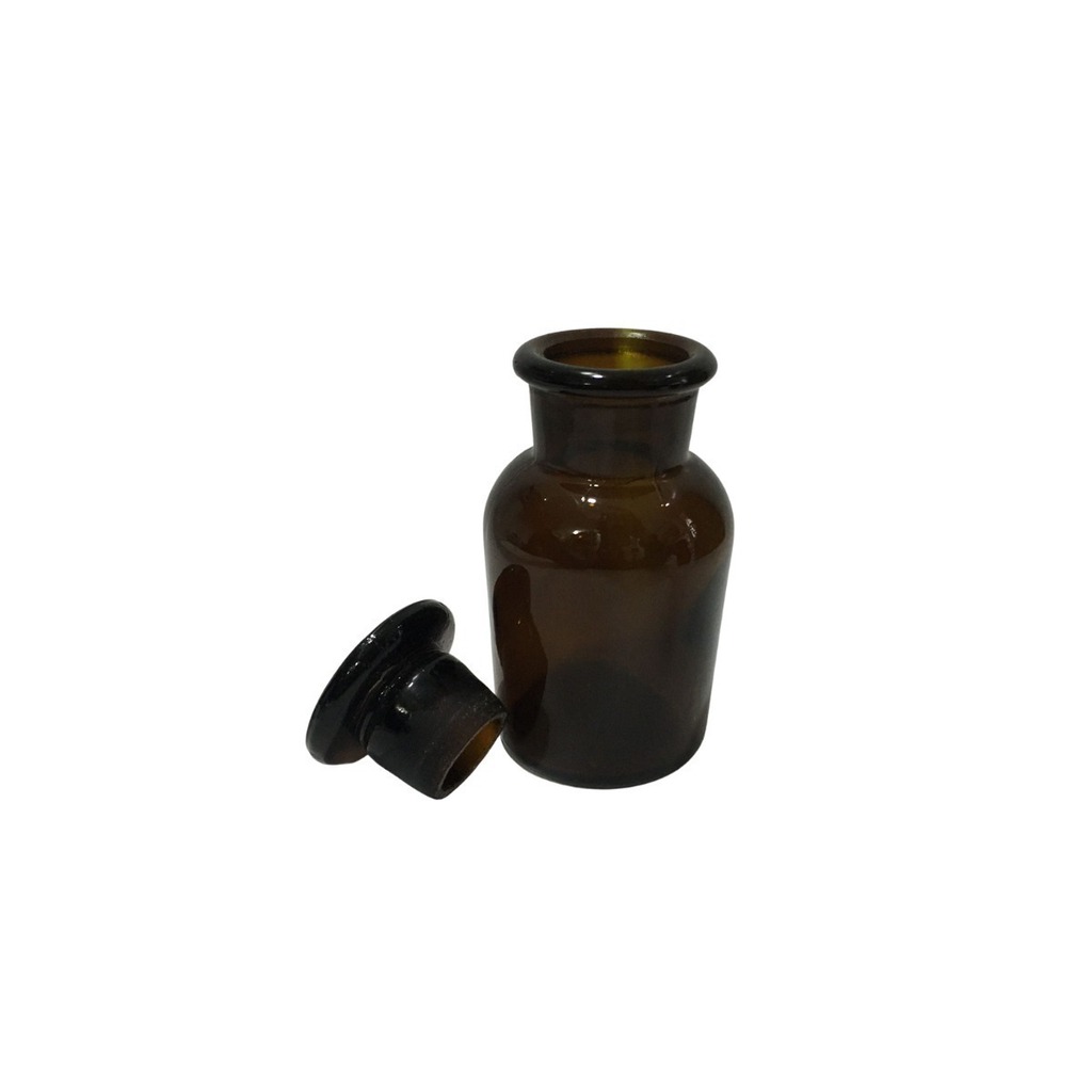 Frasco Reagente Alcalino Ambar Boca Larga Rolha De Vidro