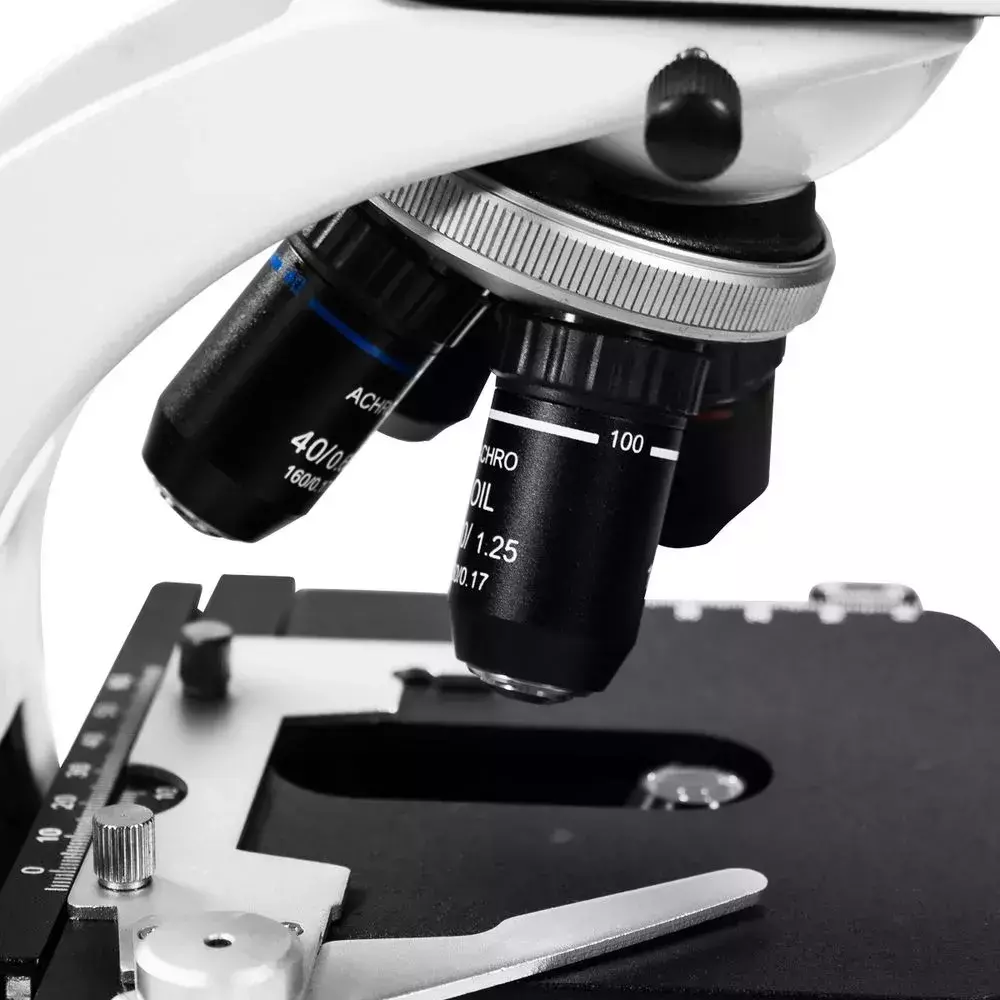 MICROSCÓPIO BIOLÓGICO ÓPTICA FINITA BINOCULAR ACROMÁTICO LED BIVOLT Aumento: 1000X e 1600XAPLICAÇÃO Este microscópio de campo claro é projetado para visualizar estruturas celulares, tecidos, microrganismos, entre outros. É de uso profissional e amplamente utilizado em laboratórios clínicos, centros de patologia, veterinárias, universidades, institutos de pesquisa, indústrias de alimentos e bebidas, farmacêuticas e agro.ESPECIFICAÇÕES TÉCNICAS- Sistema óptico: finito- Cabeçote: binocular de livre articulação tipo Siedentopf - Inclinação: 30°- Rotação: 360°- Ajuste interpupilar: 55mm - 75mm- Oculares: campo amplo, WF10X/18mm e WF16X/13mm- Ajuste de dioptria: ±5 ocular direita - Aumento: mín. 40X e máx. 1600X- Revólver: reverso, quádruplo com clique interno de parada (objetivas parcentralizadas e parfocalizadas) - Objetivas: acromáticas DIN 45mm e codificadas por cores; 4X/0.10mm; 10X/0.25; 40X(S)/0.65mm; 100X(S, óleo)/1.25mm. - Lentes com tratamento antifúngico- Condensador: ABBE NA 1,25- Diafragma de íris: diâmetro 2mm - 30mm e filtro de 32mm- Um sistema mecânico integrado de pinhão e cremalheira controla a altura do condensador. - Sistema de focalização: coaxial com macrométrico e micrométrico conjugados e bilaterais- Faixa de focalização: 14mm - Precisão do ajuste micrométrico de 0,01mm- Platina mecânica composta por dupla camada, quadrada (125mm x 125mm)e móvel com deslizamento X-Y (60mm x 40mm) - Sistema de Iluminação: tipo Köhler com lâmpada de LED 3.5V/1W e regulador de intensidade luminosa (vida útil: 100.000 horas)- Voltagem: Bivolt- Peso 4kg- Dimensões: 170mm x 200mm x 330mm - Interruptor traseiroCONDIÇÕES AMBIENTAIS DE TRABALHO Temperatura ambiente: 0°C - 40°C Umidade relativa: até 85% A periodicidade de manutenção preventiva para centrífugas de bancada e microscópios óticos pode variar principalmente de acordo com o uso e condições ambientais e recomendações dos fabricantes. ***MICROSCOPIOS OPTICOS***Recomendada a cada 1 ano, mas pode ser reduzida para 6 meses em caso de uso intenso ou em condições ambientais agressivas (alta umidade, poeira, etc.). Os itens checados neste instrumento devem ser: limpeza das lentes e oculares, verificação do sistema de iluminação, lubrificação das partes móveis, alinhamento óptico, inspeção da fonte de energia, e calibração do sistema.Manutenções preventivas são cruciais para garantir a precisão, segurança e durabilidade dos equipamentos. Reforçamos, assim, a necessidade de agendar as manutenções preventivas conforme os protocolos internos de qualidade.APRESENTAÇÃO DO CONTEÚDO DA EMBALAGEM - 1 microscópio - 1 par de oculares WF10X- 1 par de oculares WF16X- 1 capa protetora- 1 óleo de imersão de 5mL- 3 filtros (1 amarelo, 1 azul e 1 verde)- 1 cabo de energia - 1 manual de instruçõesATENÇÃO - Antes de manipular o equipamento leia atentamente o manual de uso - Tire a embalagem do microscópio cuidadosamente para evitar queda e dano do equipamento e seus acessórios.- As lentes do microscópio são calibradas, não tente desmontá-las.- O revólver e o sistema de focalização têm construção precisa, não tente desmontá-los.- Mantenha os instrumentos em local fresco e seco. Desconecte-o da fonte de energia e coloque a capa protetora após o uso.