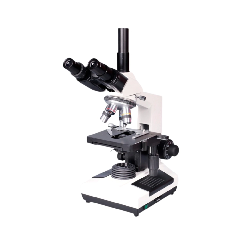 Cabeçote: Microscópio biológico trinocular Siedentopf, Distância interpupilar ajustável (48~75mm); Tubo binocular com inclinação de 30 e com rotação em
