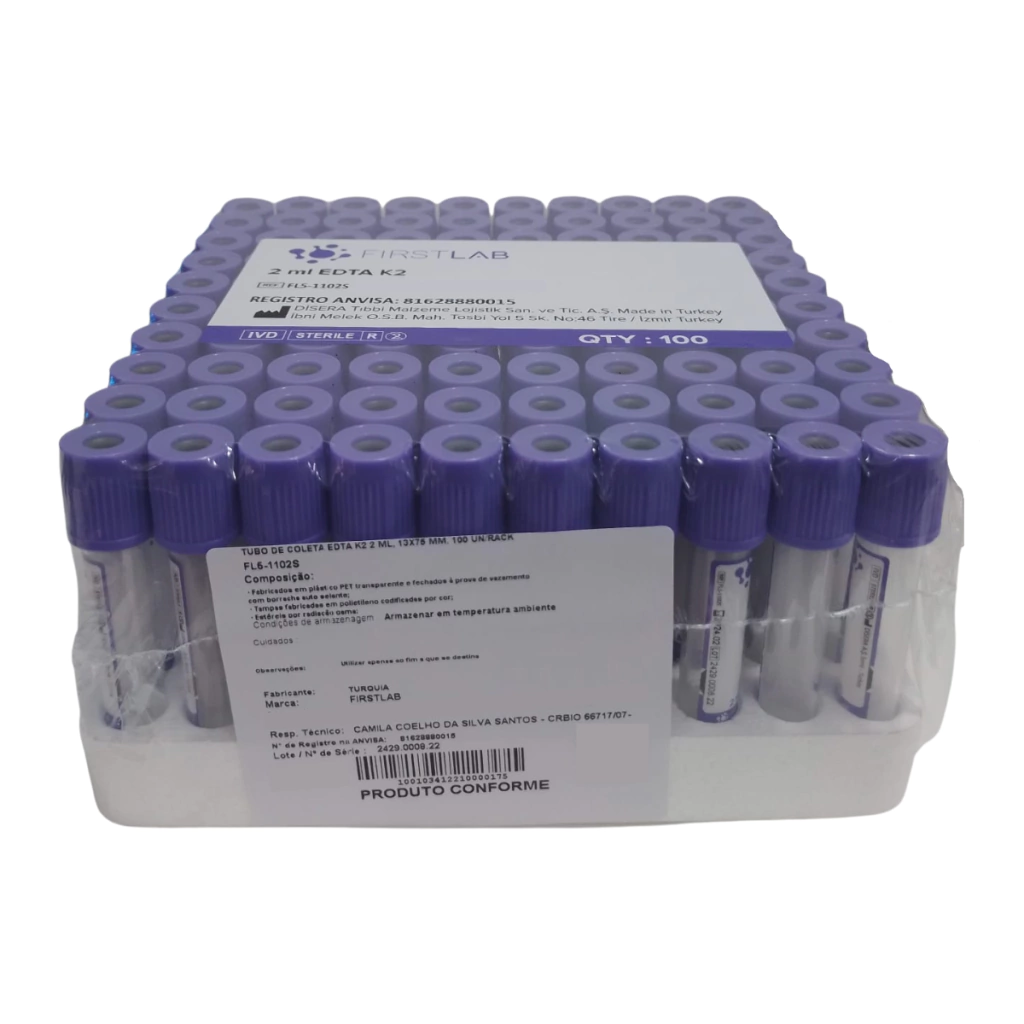 Tubo De Coleta Edta K2 2 Ml, 13x75 Mm. 100 Un/Rack (Firstlab)